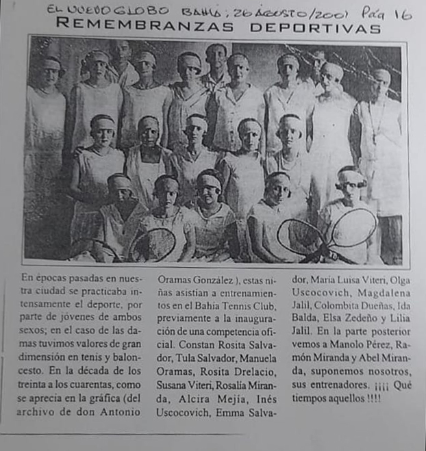 Mujeres tenistas de Bahía de Caráquez. Publicación de El Nuevo Globo.
