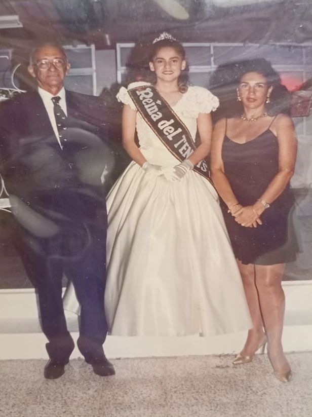 Paola Sánchez Uscocovich, Reina del BTC (1995) junto al Presidente, César Bellettini Zedeño y Ruth Bellettini García.