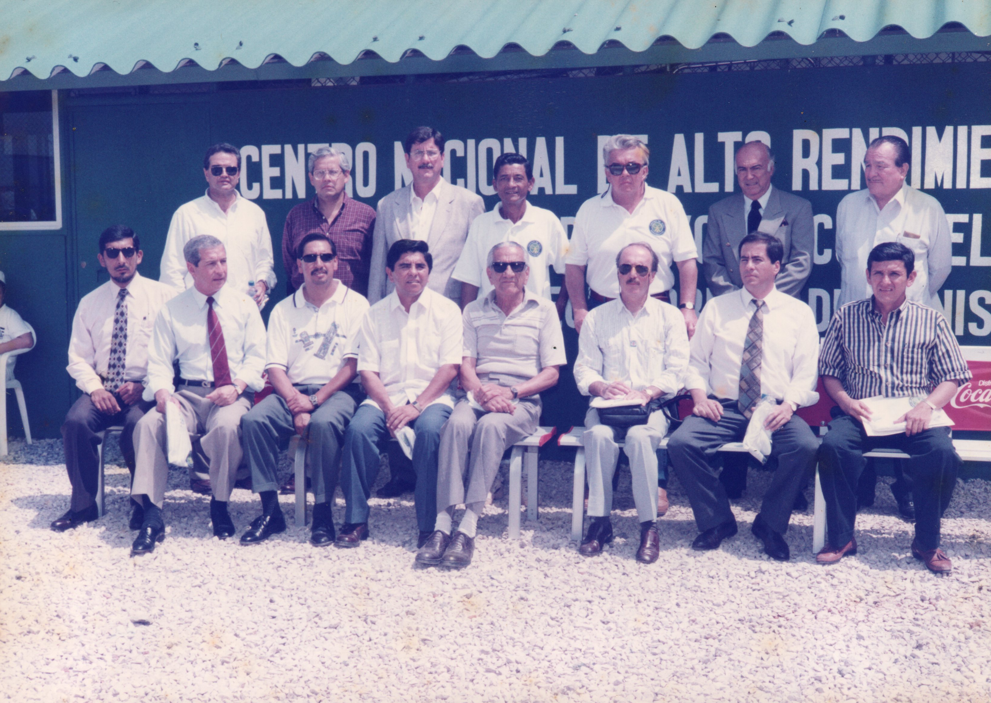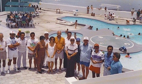 Inauguración de la piscina del BTC. En la foto varios miembros de la Directiva: César Bellettini Zedeño (Presidente), Juan Moreno, Gabriel Bellettini García, Johnny García, Eduardo Arguello, Campo García Uscocovich, entre otros.