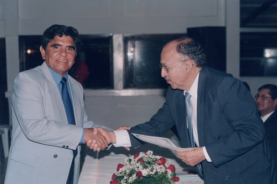 Macario Uscocovich, Cecilio jalil y el Dr. Leonardo Viteri Molinari en una premiación del BTC.