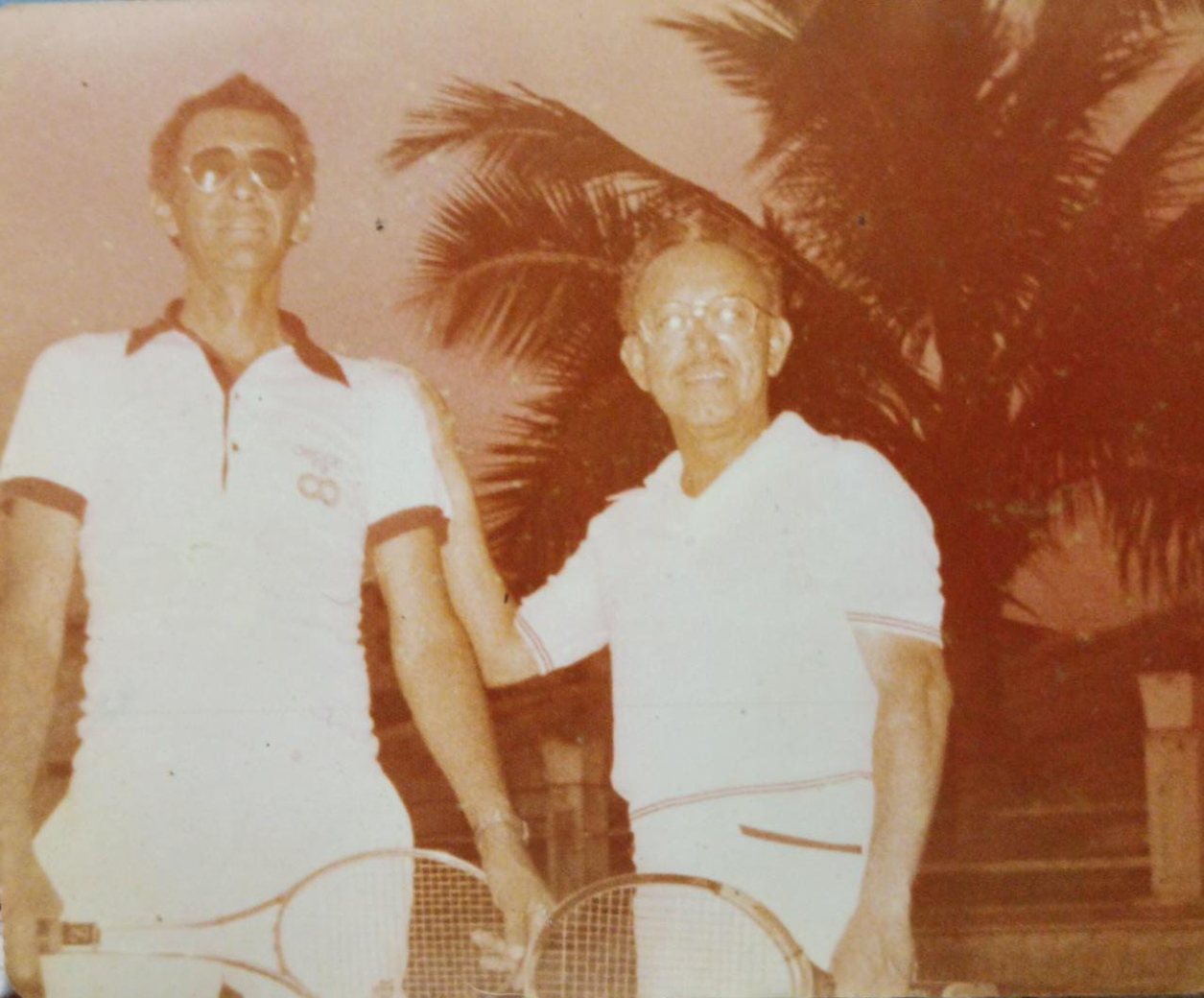 Juan Moreno Vintimilla y Cecilio Jalil en una tarde de tenis en el BTC. Años 90.